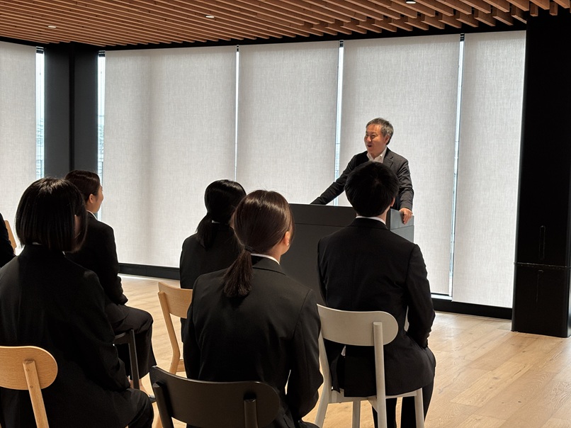 廣田社長の祝辞では、今日から環境がガラリと変わるであろう新入社員の皆さんを気遣われるとともに、めまぐるしく流れてゆく今の世の中においてもしっかり自分の芯を保って進んでいく社会人になれるようエールを送られました。
