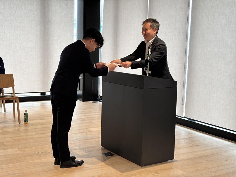 式は廣田社長の祝辞に始まり、その後、新入社員の皆さんひとりひとりに辞令を手渡されました。